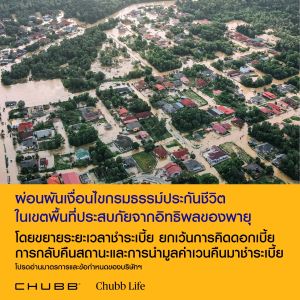 ชับบ์ ไลฟ์ ประกันชีวิต ห่วงใยลูกค้า ขยายเวลาผ่อนผันชำระเบี้ย เพื่อบรรเทาผลกระทบจากสถานการณ์น้ำท่วม
