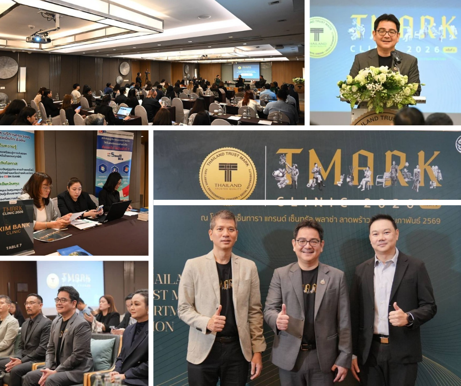 กรมส่งเสริมการค้าระหว่างประเทศ กระทรวงพาณิชย์ จัดกิจกรรม “T Mark Clinic ครั้งที่ 1 ประจำปี 2569” ณ โรงแรม เซ็นทารา แกรนด์ เซ็นทรัลพลาซา ลาดพร้าว กรุงเทพฯ เพื่อเป็นการเสริมสร้างศักยภาพผู้ประกอบการ พร้อมให้คำปรึกษาเชิงลึก และยกระดับผู้ประกอบการไทยสู่มาตรฐานสากลผ่านตราสัญลักษณ์ Thailand Trust Mark (T Mark)