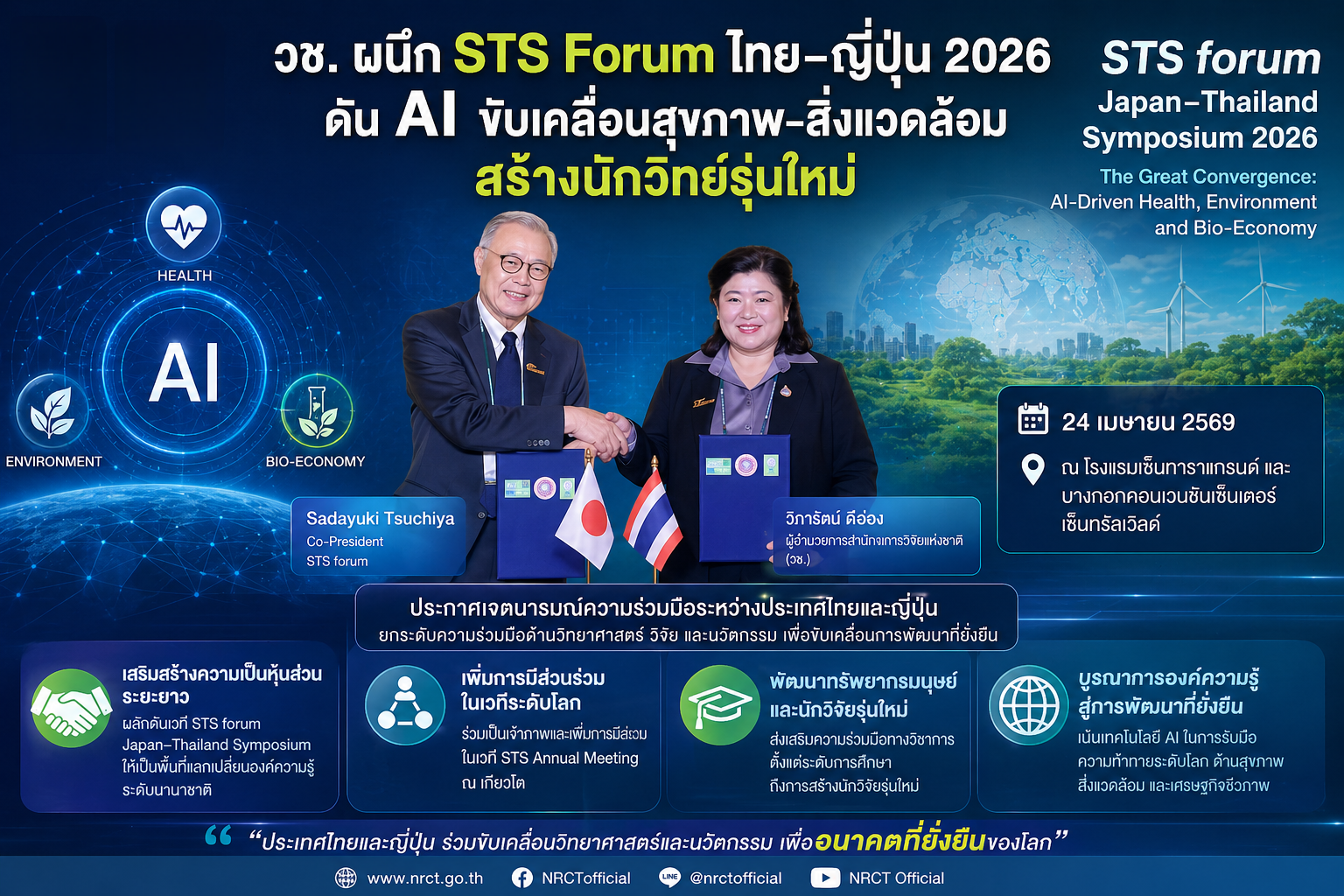 สำนักงานการวิจัยแห่งชาติ(วช.) กระทรวงการอุดมศึกษา วิทยาศาสตร์ วิจัยและนวัตกรรม โดย ดร.วิภารัตน์ ดีอ่อง ผู้อำนวยการสำนักงานการวิจัยแห่งชาติ ร่วมกับ STS forum (Science and Technology in Society forum) ประเทศญี่ปุ่น จัดงานสัมมนาครั้งสำคัญ “STS forum Japan-Thailand Symposium 2026” เพื่อแลกเปลี่ยนวิสัยทัศน์และกระชับความสัมพันธ์ทางวิชาการและนวัตกรรมระหว่างสองประเทศ