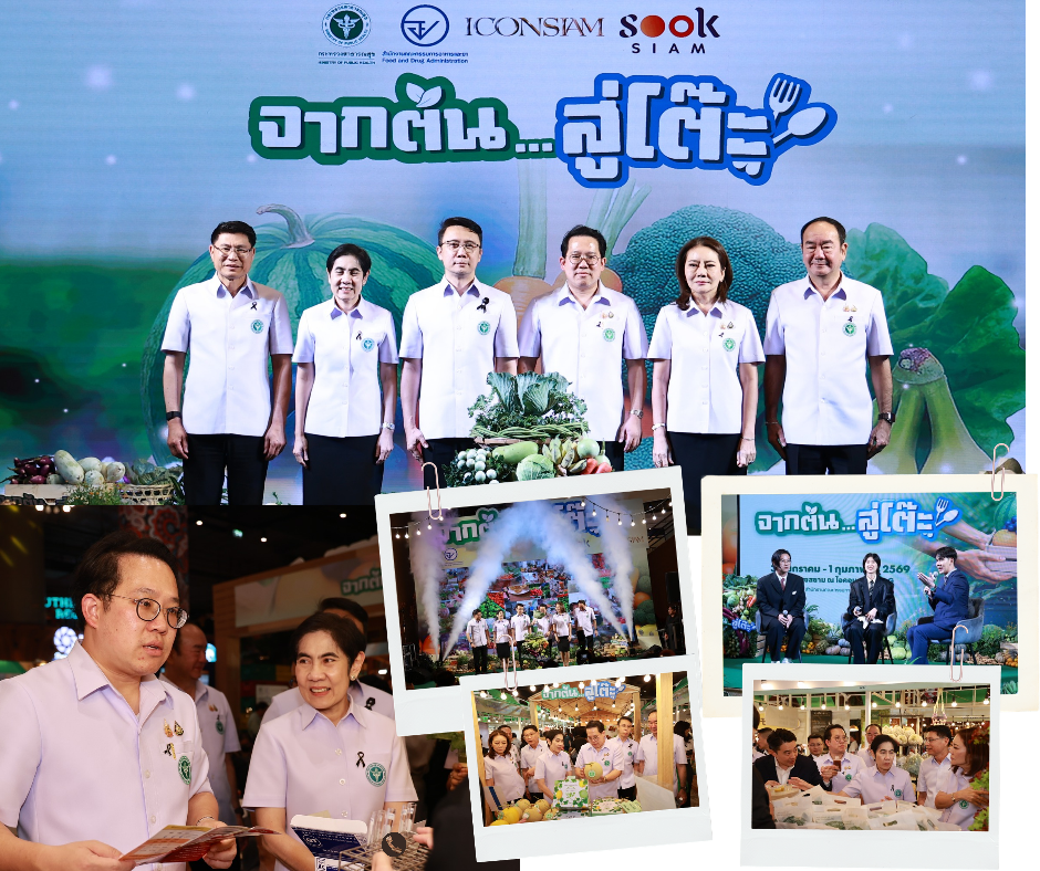 สำนักงานคณะกรรมการอาหารและยา (อย.) จัดงาน “จากต้น…สู่โต๊ะ” ณ เมืองสุขสยาม ห้างสรรพสินค้าไอคอนสยาม ชั้น G ระหว่างวันที่ 30 มกราคม – 1 กุมภาพันธ์ 2569 เปิดพื้นที่เชื่อมโยงแหล่งผลิตสู่ผู้บริโภค พร้อมจำหน่ายผัก ผลไม้ และผลิตภัณฑ์แปรรูปคุณภาพได้มาตรฐาน ปลอดภัย สดใหม่จากแหล่งผลิตโดยตรง ควบคู่กิจกรรมวิชาการ นิทรรศการให้ความรู้ การเสวนาจากผู้เชี่ยวชาญ และกิจกรรมบันเทิงตลอดงาน