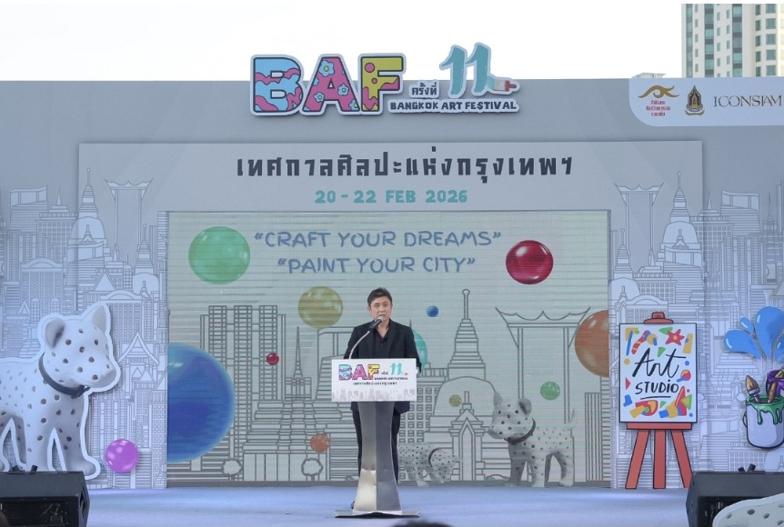ท่ามกลางกระแสการขับเคลื่อน “เศรษฐกิจสร้างสรรค์” ที่กำลังกลายเป็นหนึ่งในกลไกสำคัญของประเทศ ปี 2569 นี้ สำนักงานศิลปวัฒนธรรมร่วมสมัย (สศร.) กระทรวงวัฒนธรรม ผนึกกำลังภาคเอกชนอย่าง ไอคอนสยาม จัดงาน เทศกาลศิลปะแห่งกรุงเทพ หรือ Bangkok Art Festival (BAF) ครั้งที่ 11 ภายใต้แนวคิด “Craft Your Dreams” และ “Paint Your City” ระหว่างวันที่ 20–22 กุมภาพันธ์ 2569 เวลา 16.00 – 22.00 น. ณ ริเวอร์พาร์ค ไอคอนสยาม กรุงเทพมหานคร