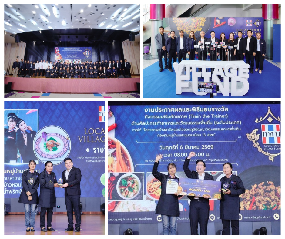 สำนักงานกองทุนหมู่บ้านและชุมชนเมืองแห่งชาติ จัดกิจกรรมเสริมศักยภาพ (Train the Trainer) ด้านศิลปะการทำอาหารและวัฒนธรรมพื้นถิ่น (ระดับประเทศ) ภายใต้ “โครงการสร้างอาชีพและต่อยอดภูมิปัญญาวัฒนธรรมอาหารพื้นถิ่น กองทุนหมู่บ้านและชุมชนเมือง 13 สาขา” ระหว่างวันที่ 4 – 6 มีนาคม 2569 ณ หอประชุมรักตะกนิษฐ ชั้น 1 โรงแรมสวนดุสิตเพลส กรุงเทพมหานคร